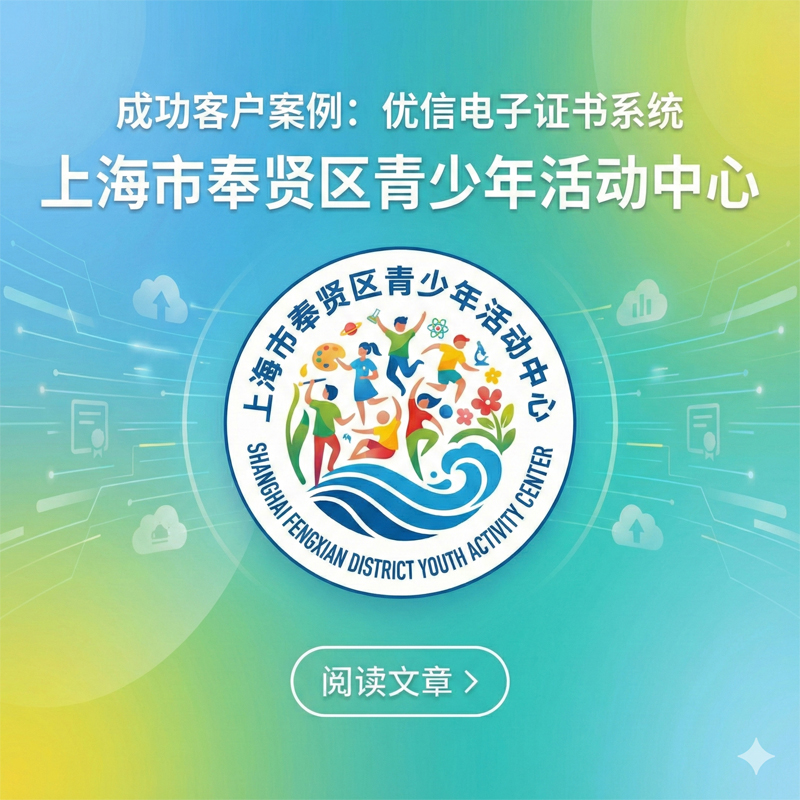 作为上海市奉贤区校外素质教育的核心阵地,上海市奉贤区青少年活动中心(简称“奉贤青少年活动中心”)承载着培育青少年综合素养、挖掘多元潜能的重要使命,其前身为1972年创建的奉贤县少年宫和1992年创建的奉贤县少科站,被誉为“艺术幼苗的沃土、科技创新的摇篮”。中心年均举办超百场科技、艺术、体育类活动及培训项目,覆盖全区中小学师生,每年为数千名在各类活动中表现优异的学生颁发获奖证书,是激励青少年积极参与、收获成长的重要载体。此前,传统纸质获奖证书的管理与发放模式,已难以适配中心规模化、高频次的活动举办需求,优信电子证书系统的落地应用,构建了高效、安全、便捷的青少年活动获奖证书数字化管理体系,助力中心实现荣誉认证全流程升级,让每一份成长荣誉都能及时传递、可信可溯。